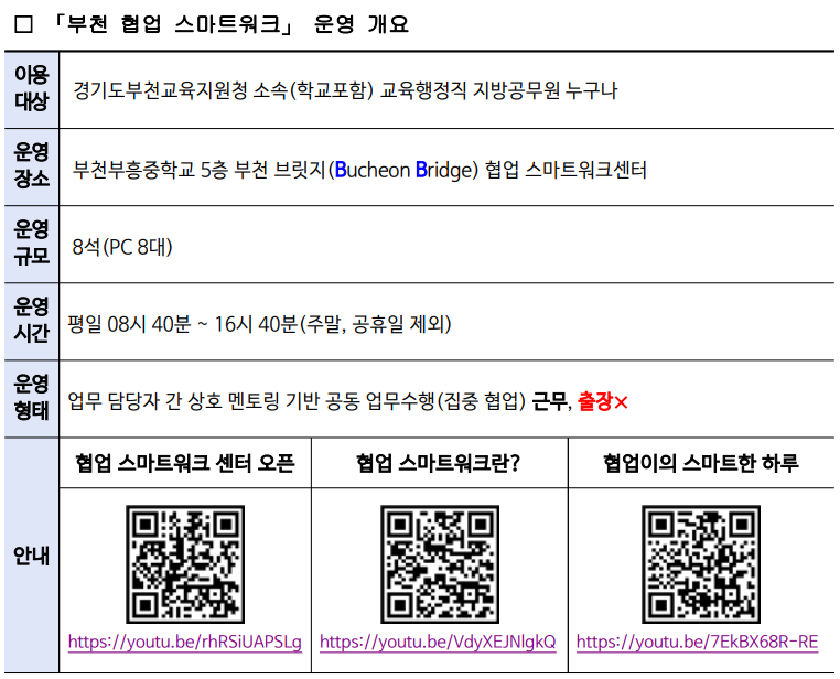 부천 협업 스마트워크 세부 운영 계획(Q&A 및 각종 서식 포함)